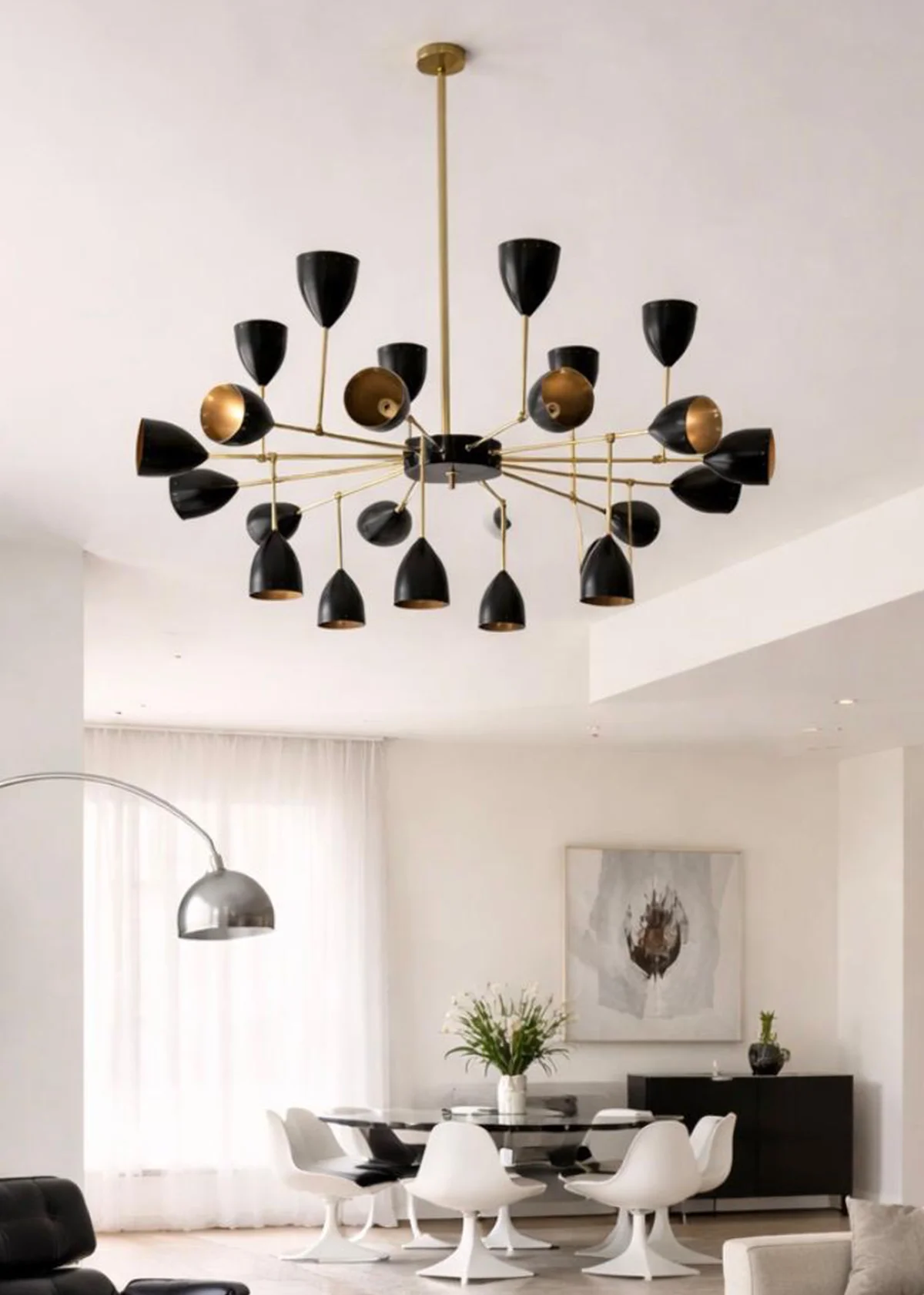 Immerse yourself in nostalgic splendour with our VENUS CHANDELIER, a sixteen-arm chandelier that embodies retro atmosphere and style. With a unique combination of double light and thirty-two metal diffusers, this statement piece offers a fascinating play of light and shadow. Its intricate metal structure lends an avant-garde touch to any room, while the vintage design exudes nostalgic charm, emphasised by the retro brass finish. Make the VENUS CHANDELIER the centrepiece of your space and experience aesthetics in its purest form.